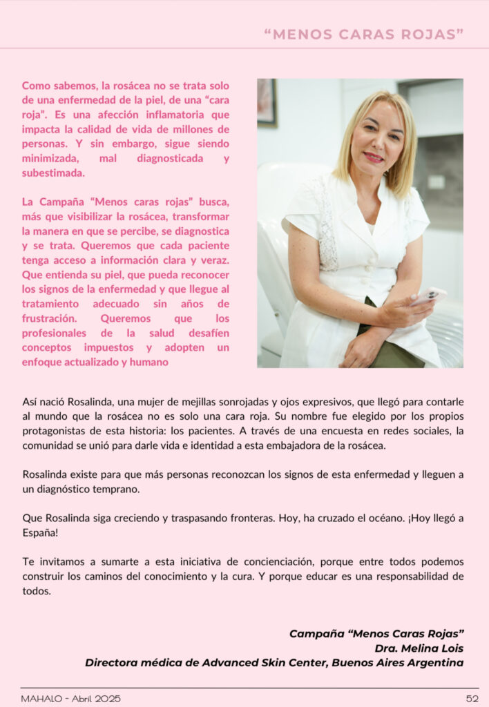La Dra. Melina Lois lleva su campaña “Menos Caras Rojas” sobre la rosácea a España, impulsando un enfoque humano, científico e internacional.